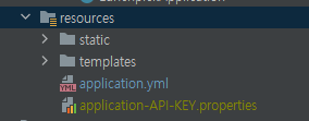 이제 스프링으로 가서 resources안에 application-API-KEY.properties 라는 파일을 만든다.