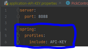 이렇게 추가해주는데, application.properties를 사용하더라도 그냥 spring.profiles.include=API-KEY 라고 적으면 될듯(?)