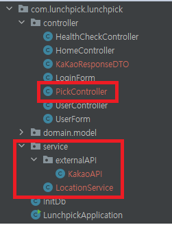 처음 작업은 패키지 정리였는데, 카카오 API 요청을 어디서 할지였다.