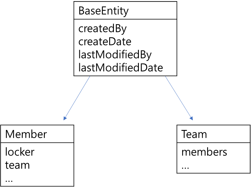 즉 Member나 Team 테이블이 createdBy, createDate 같은 속성들을 공통적으로 가질 때 사용한다.