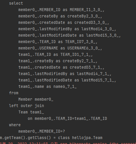 이렇게 테스트를 했을 때 Team은 프록시로 조회되어야 하는 것이 맞다. 확인을 해보면,